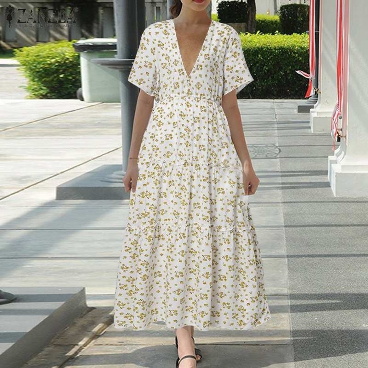ヨーロピアンスタイルとアメリカンスタイルのストリートニューファッションエイントレードラージサイズウィメンズフローラルVネックシフォンロングラージスイングAラインドレス 大きめサイズ 花柄 6733083050920677