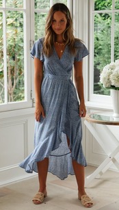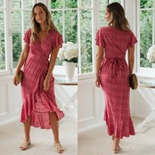 AliExpressアマゾンebayセールヨーロッパとアメリカンスタイルの夏のファッション小さな花柄Vネック半袖レースアップドレス サマー 夏物 ヨーロピアン 6733064240280828