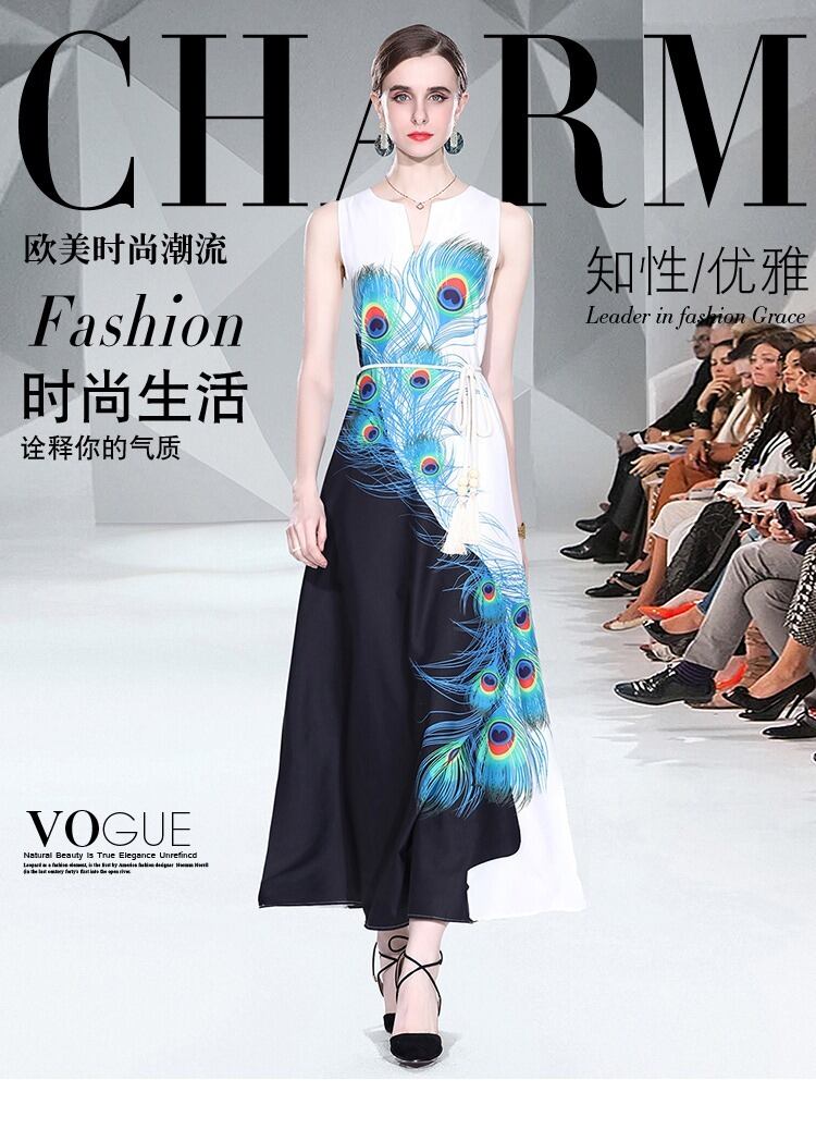 AmazonAliExpress夏夏ヨーロッパとアメリカンスタイルのストリートセクシーな気質Vネックネクタイプリントノースリーブロングドレスドレス サマー 夏物 ヨーロピアン 6733095538310914