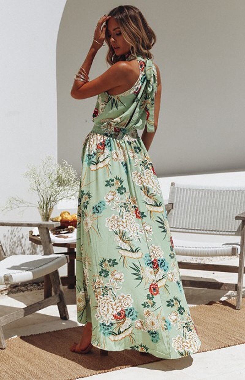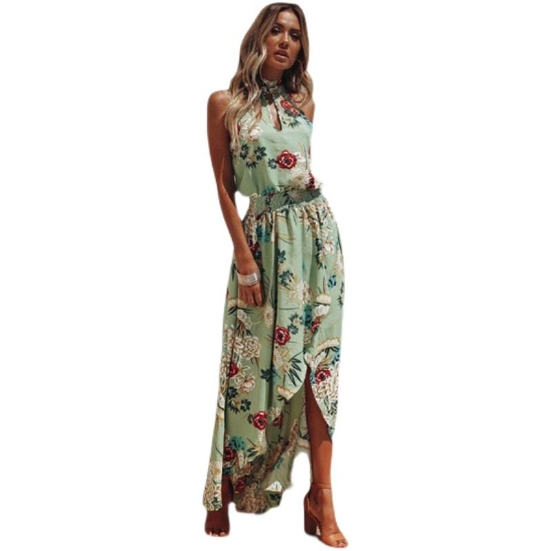 ヨーロピアンスタイルストリートサマートレンドビーチロングドレスノースリーブホルターネックオフショルダーミドル丈eBayAliExpressドレス 夏物 6733061012456368