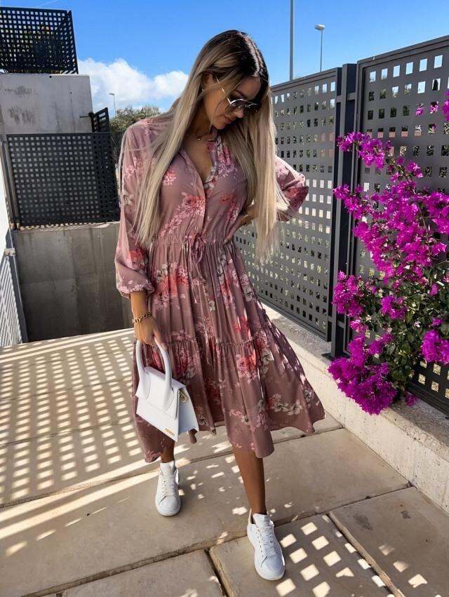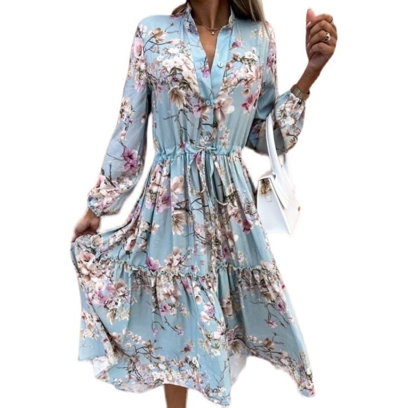アマゾンAliExpress春のヨーロッパとアメリカンスタイルのストリートVネック長袖プリントウエストスイングAタイプドレス ロング スプリング 春物 ヨーロピアン 6733028085475357