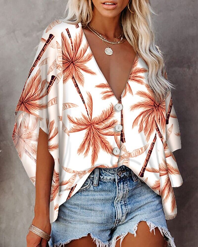 ヨーロッパとアメリカンスタイルの新しい願いAliExpress気質シフォンVネック5点バットスリーブ絞り染めマルチボタンプリントシャツ ヨーロピアン 6733082987462302
