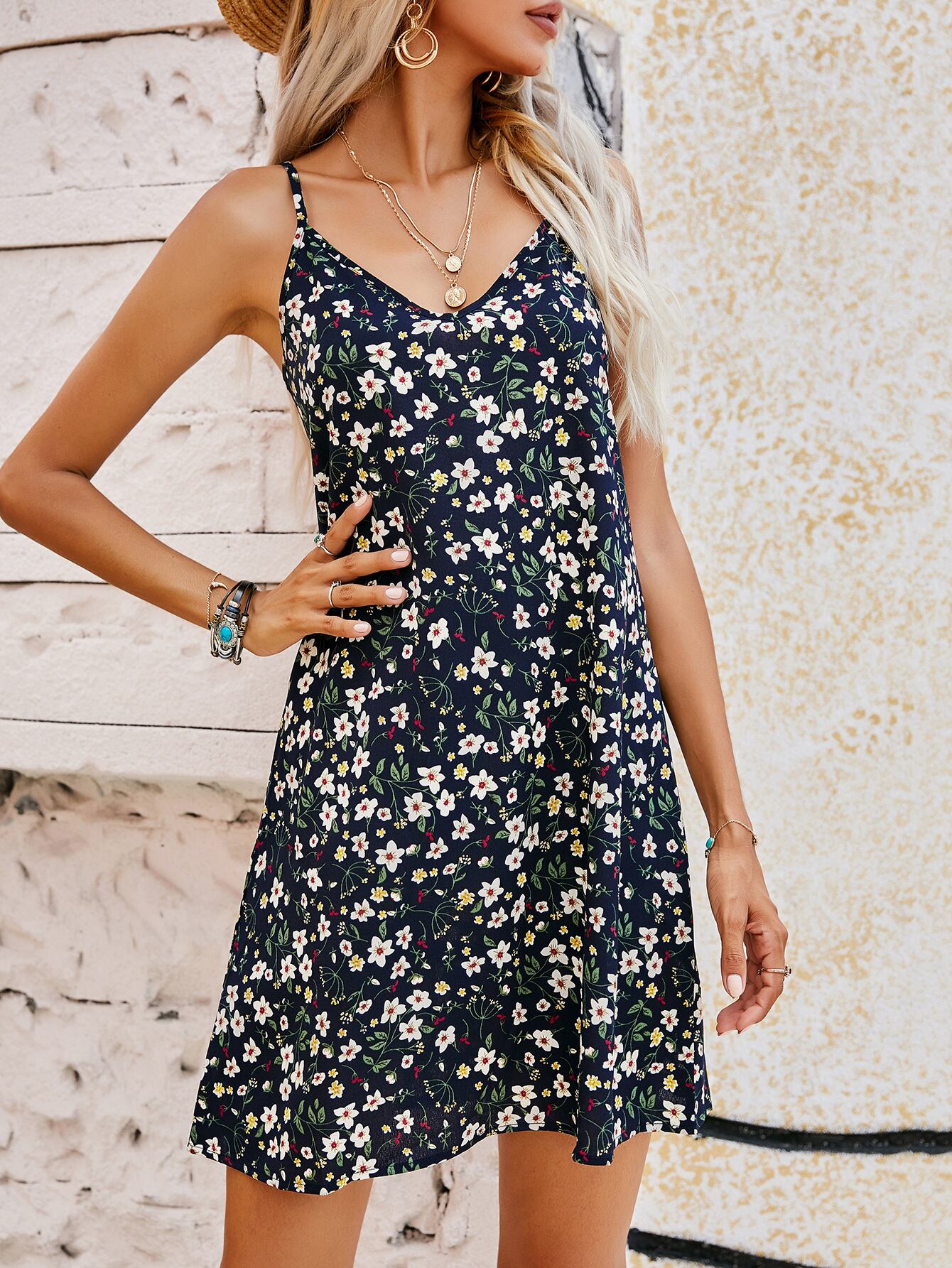 夏の新作ファッションヨーロッパとアメリカンスタイルのマルチカラードット長袖セクシーキャミソールスカート女性の潮 ロング サマー 夏物 ヨーロピアン 6733098250758009