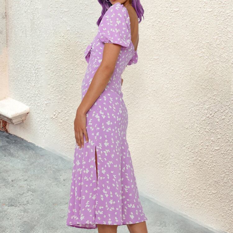 ヨーロッパとアメリカンスタイルの新しいファッションの夏の花の気質は、背中の開いた半袖のミッドウエストのスリットドレスの女性の潮を結びました サマー 夏物 花柄 ヨーロピアン 6733039630220240