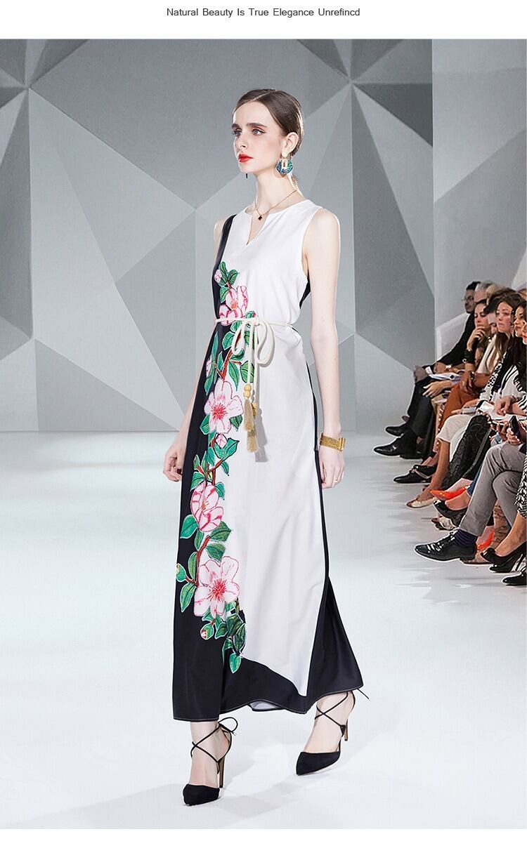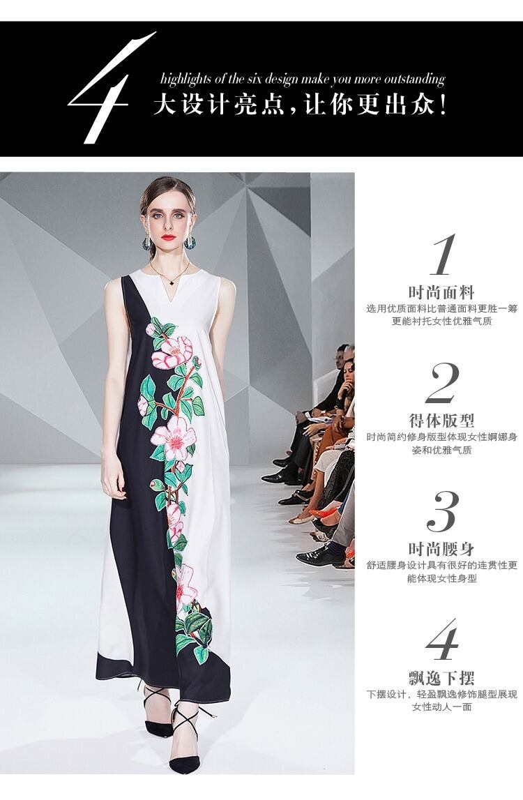 ヨーロッパとアメリカンスタイルのストリートエイントレードAliExpressファッションレトロVネックネクタイプリントノースリーブミディスカートAタイプドレス ヨーロピアン 6733070690009824