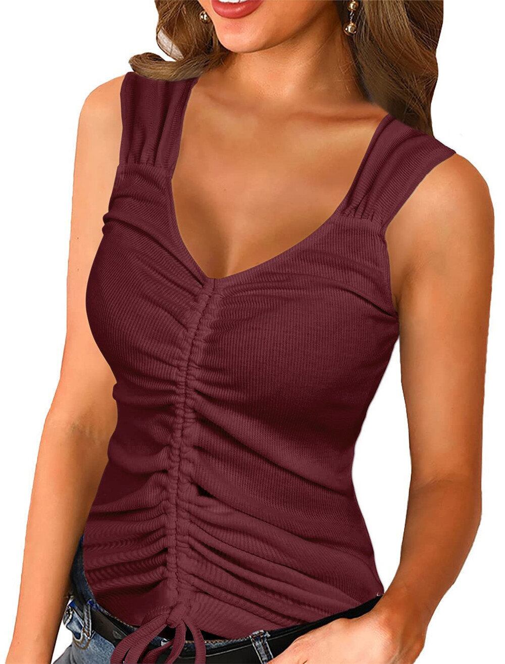 夏の新しい独立局ヨーロッパとアメリカのスタイルのストリートファッション国境を越えた女性のスレッドドローストリングスリムベストトップTシャツ サマー 夏物 ヨーロピアン 6733081212180212