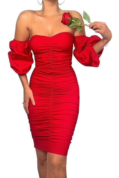 ヨーロッパとアメリカのスタイルのストリート春と夏の新しいファッション赤いプリーツ半袖ネックラインスリムフィットセクシーなドレス レッド スプリング 春物 サマー 夏物 ヨーロピアン 673304551565049