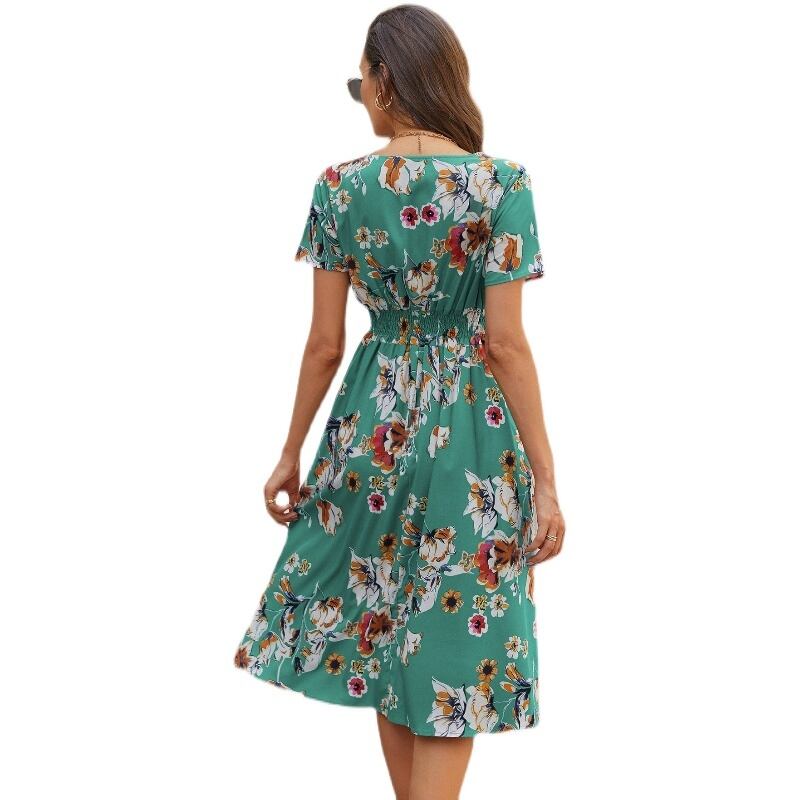 夏の新しいヨーロッパとアメリカンスタイルのストリートファッションAliExpressアマゾン半袖Vネックウエストスリミングカラースカート サマー 夏物 ヨーロピアン 6733067343077885