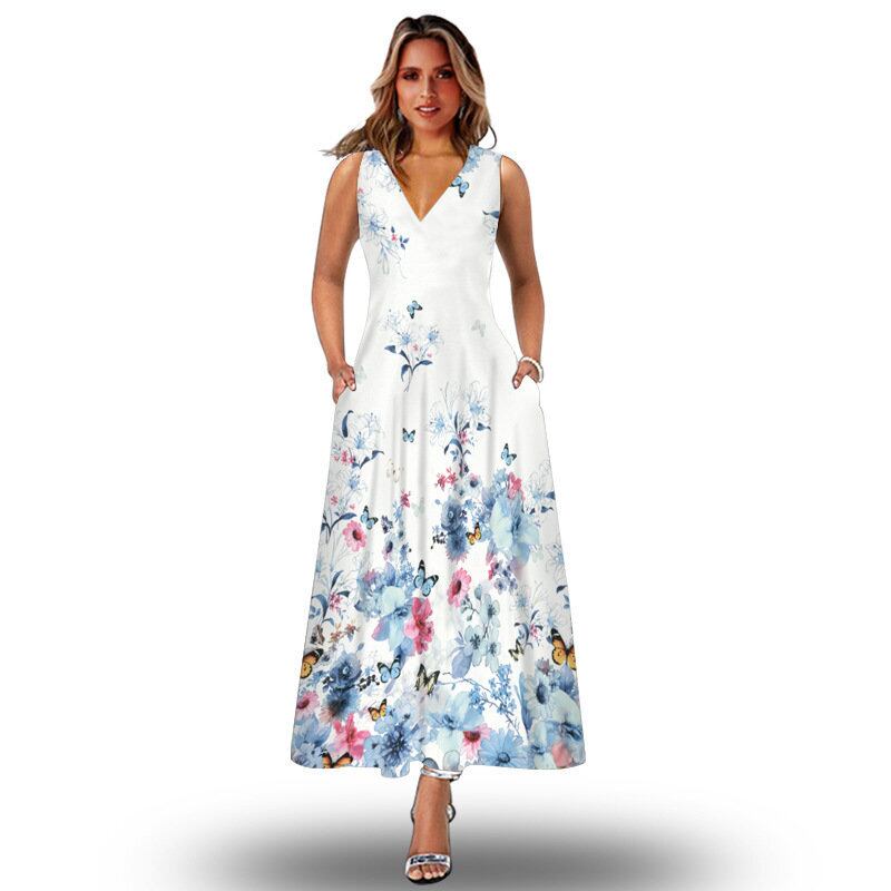 2022年国境を越えたヨーロッパとアメリカの新しいノースリーブロングドレスレディースカジュアルプリントラージスイングスカートボヘミアンビーチロングスカート ヨーロピアン 6733032764841760