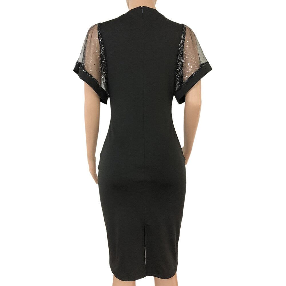 夏のヨーロッパとアメリカンスタイルの婦人服アマゾンebayクロスボーダー新しい無地Vネックアイロンダイヤモンドメッシュロータススリーブドレス サマー 夏物 ソリッドカラー ヨーロピアン 6733085415989238