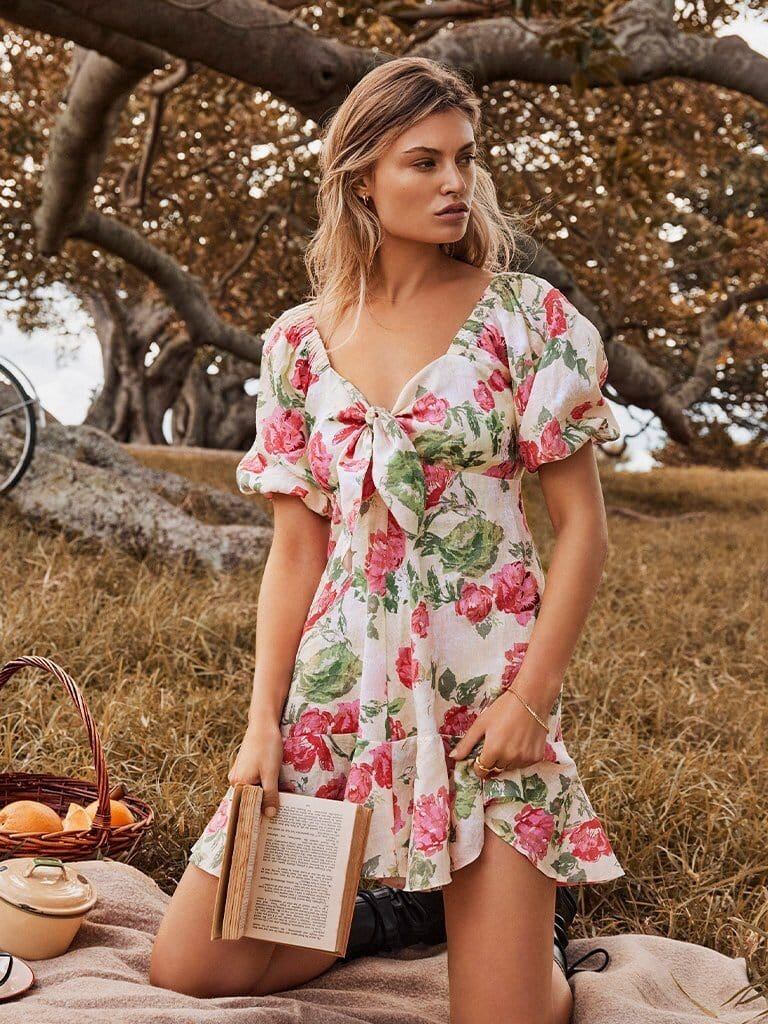 ヨーロッパとアメリカンスタイルのストリートファッションの女性の夏の新しいプリントスカートアマゾンeBayeignトレードVネックバックレスドレス サマー 夏物 ヨーロピアン 6733036938480119