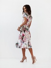 夏のヨーロッパとアメリカンスタイルのストリートファッション気質セール新しいアマゾンプリントVネック半袖ミッドレングスドレス サマー 夏物 ヨーロピアン 6733050098089203