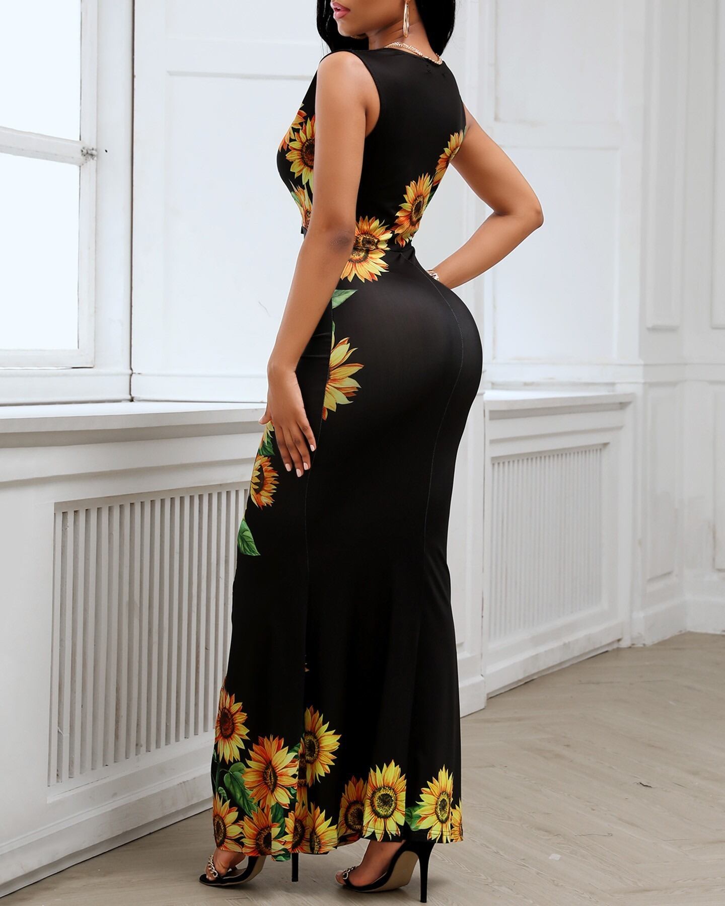 AliExpressヨーロッパとアメリカンスタイルのストリート気質女性の夏のファッションノースリーブセクシーなVネックロングプリントドレス サマー 夏物 ヨーロピアン 6733040479439058