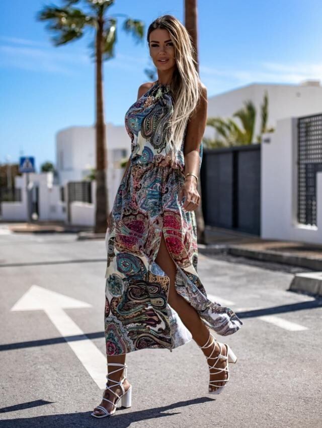 アマゾンAliExpressヨーロッパとアメリカのストリートファッション気質新しいスリングプリントウエストスリットロングスカートドレス ヨーロピアン 6733020341764827