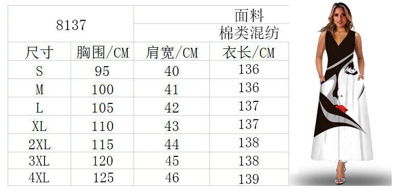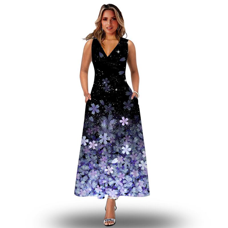 ヨーロッパとアメリカのスタイルストリートニューサマーレディースノースリーブロングスカートVネックプリントレトロドレスヨーロッパとアメリカの国境を越えた婦人服 夏物 ヨーロピアン 673307556357517