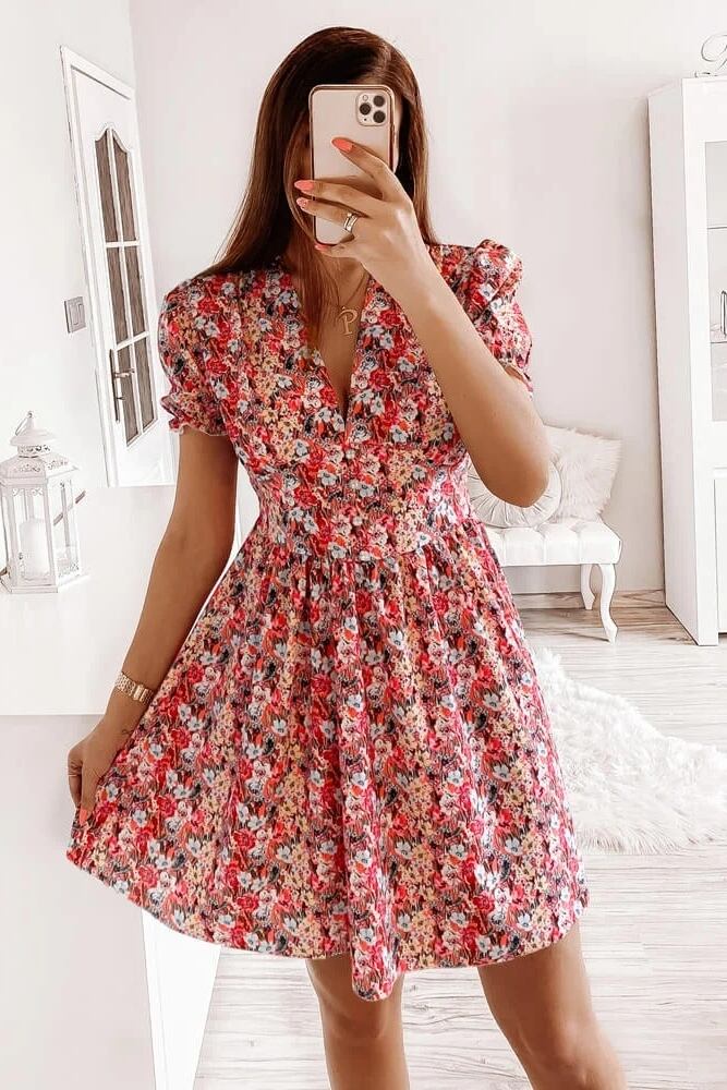 ヨーロッパとアメリカンスタイルのストリートファッション夏の気質eignトレードプリントセクシーなVネックウエストファッションフローラルドレス100%オフ サマー 夏物 花柄 ヨーロピアン 6733025414783877