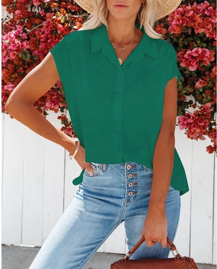 シャツクロスボーダーヨーロッパとアメリカンスタイルのストリートウィメンズアマゾントップスノースリーブVネック無地ウィメンズシャツ ソリッドカラー ヨーロピアン 6733084304695165