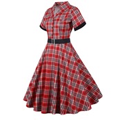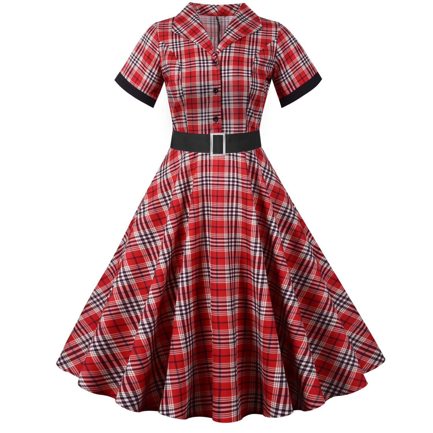 AliExpressサマー半袖スーツ襟スリムフィットレトロチェック柄プリントワンピースベルト付き ショート ハーフスリーブ 夏物 ハーネス 6733026920857402