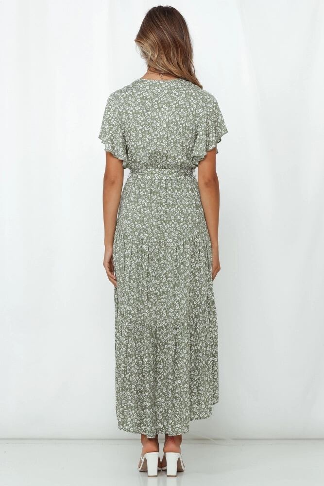 夏の新作ファッション販売気質新作半袖プリントウエストネクタイミドル丈スウィングドレス サマー 夏物 6733058533473798