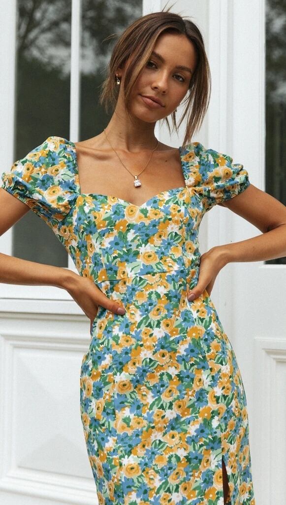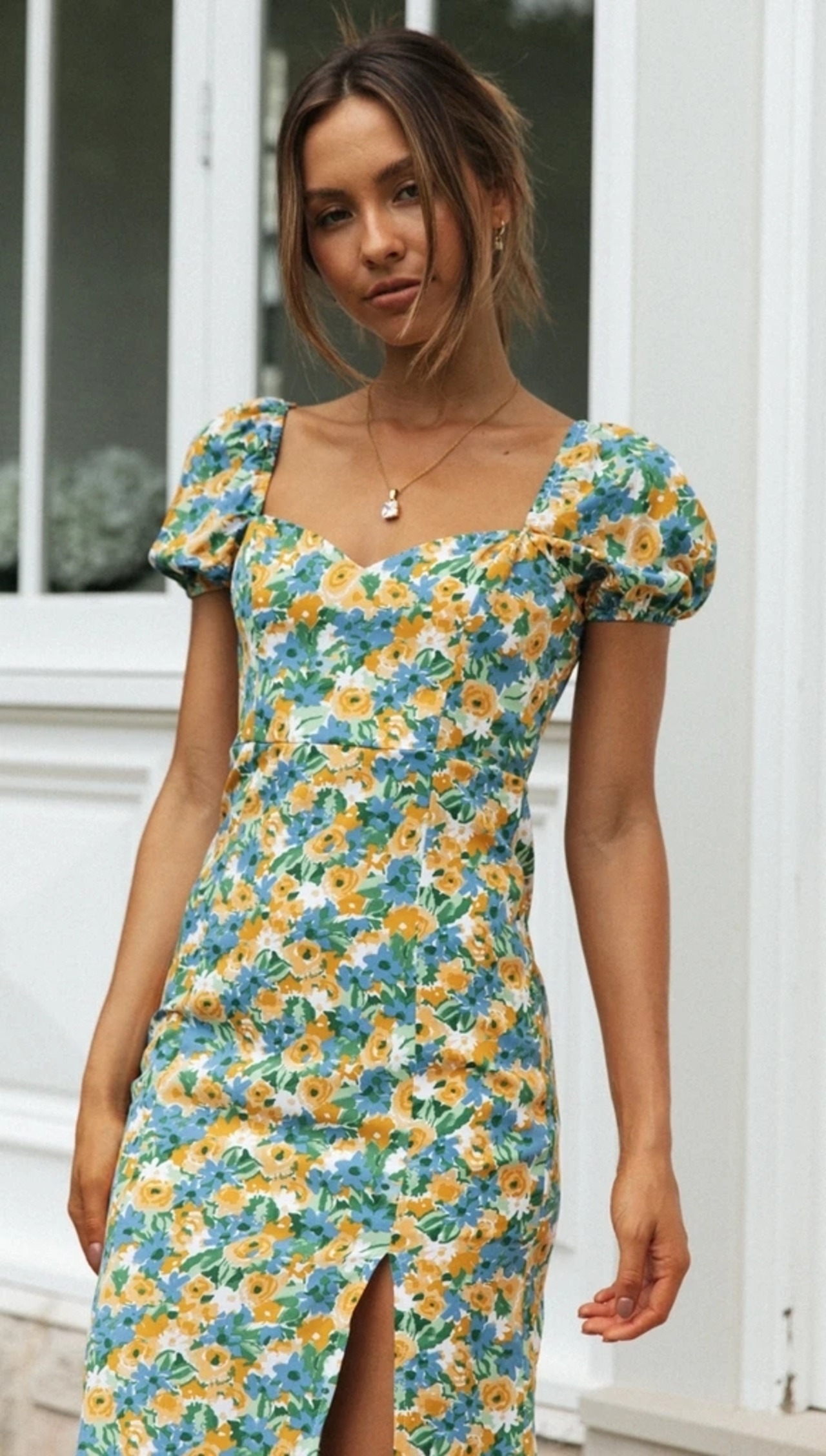 春夏新作ファッションヨーロッパ・アメリカンスタイル気質半袖プリント裾スリットスリムワンピースレディースタイド スプリング 春物 サマー 夏物 ヨーロピアン 6733060328152719