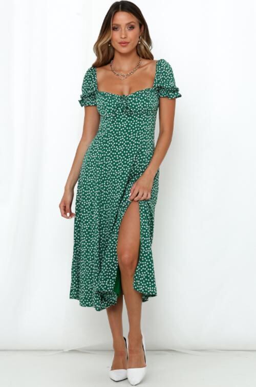 オーバーザニーレース半袖ドレスヨーロッパとアメリカの牧歌的なホリデースタイルレトロなスクエアネックフローラルウエストスリミングミドルスカート 花柄 スクウェア ヨーロピアン 6733034549243078