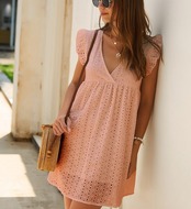 ヨーロピアンとアメリカンスタイルのストリートファッションクロスボーダーの新しいレースジャカード気質Vネックホロードレス女性ポケット付き 6733085695297827