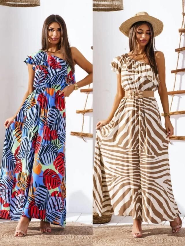 アマゾンヨーロッパステーションヨーロッパとアメリカンスタイルのストリートファッション気質新しいウエストオフショルダープリントロングドレス ヨーロピアン 6733078173277543