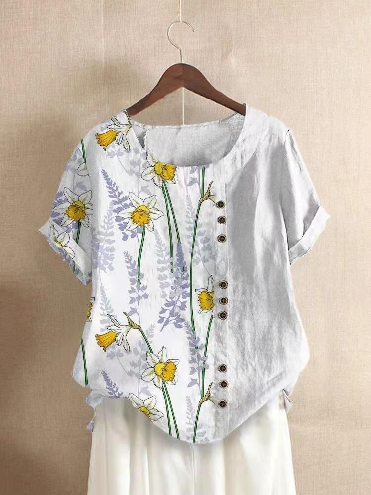 ヨーロッパとアメリカのスタイルのファッションクロスボーダーアマゾン春と夏のセール新しい印刷ラウンドネックプルオーバー半袖ルーズラージサイズの女性 ショート ハーフスリーブ 大きめサイズ スプリング 春物 サマー 夏物 Oネック ヨーロピアン 6733085760201356