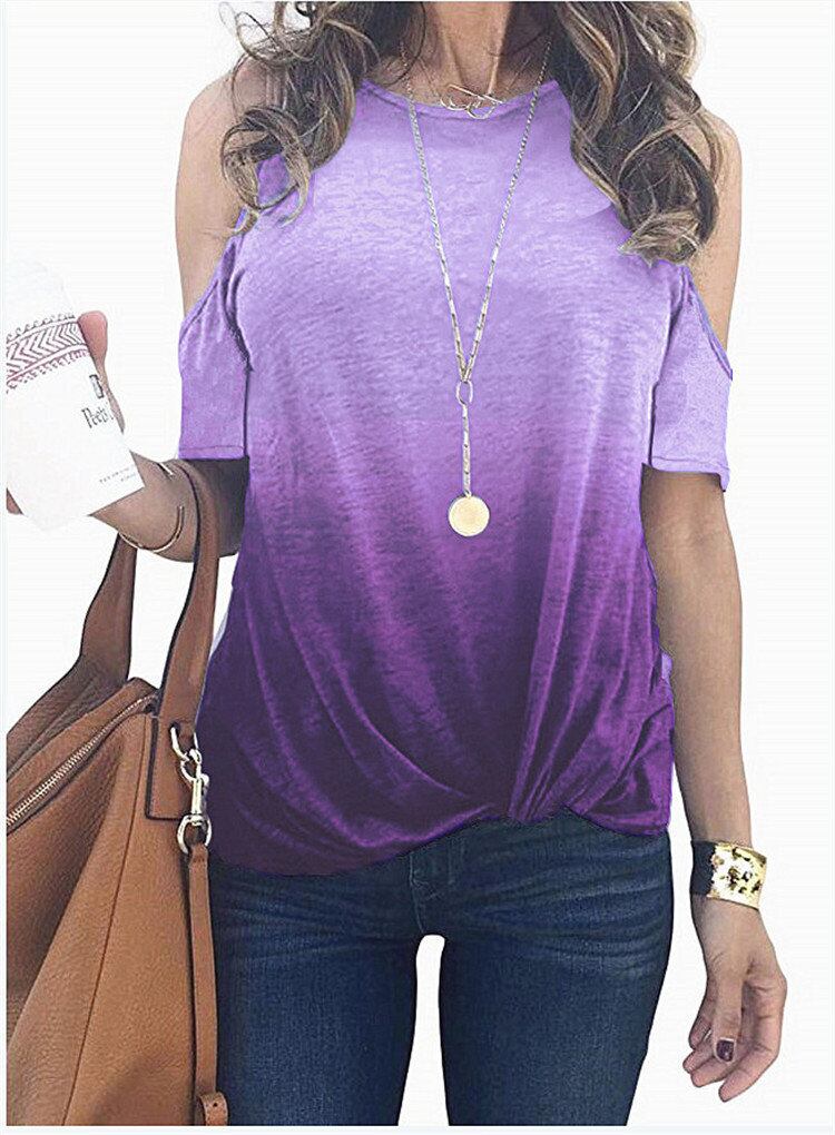 夏のアマゾンは、ヨーロッパとアメリカのスタイルのストリートファッションの国境を越えた新しいラウンドネックグラデーション印刷半袖Tシャツの女性を願っています サマー 夏物 Oネック ヨーロピアン 6733030303844432