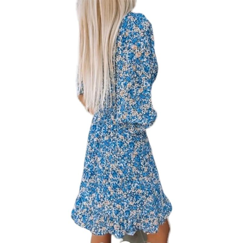 ヨーロッパとアメリカンスタイルのストリートファッションの新しいドレスAmazonAliExpressフローラルVネックフレアハーフスリーブプリントスカート レッド 花柄 ヨーロピアン 6733079771285574
