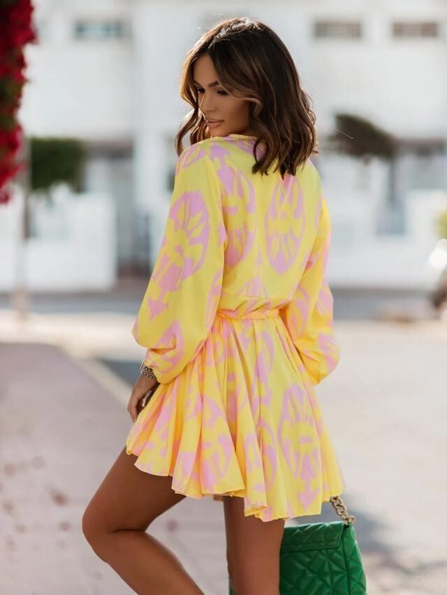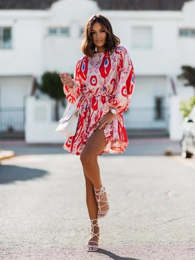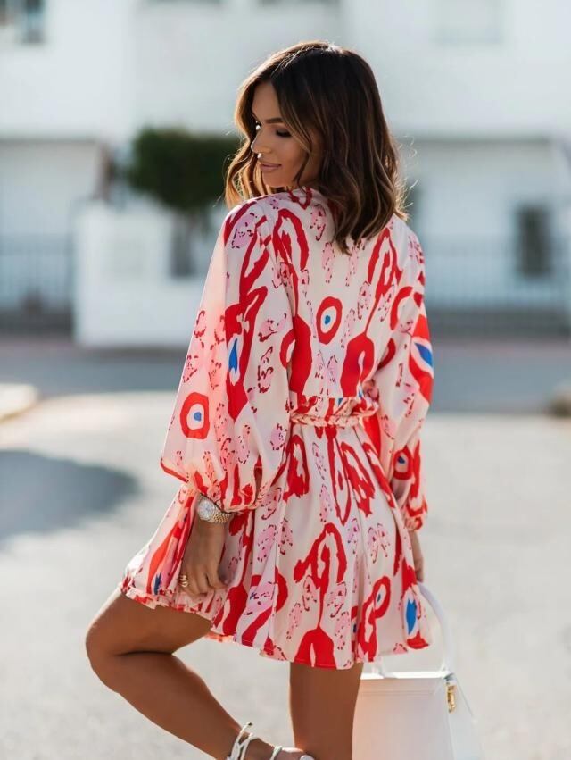 アマゾンAliExpressヨーロッパとアメリカのストリートホットミッドスリーブラウンドネックプリントウエストタイドレス Oネック ヨーロピアン 673308762579957