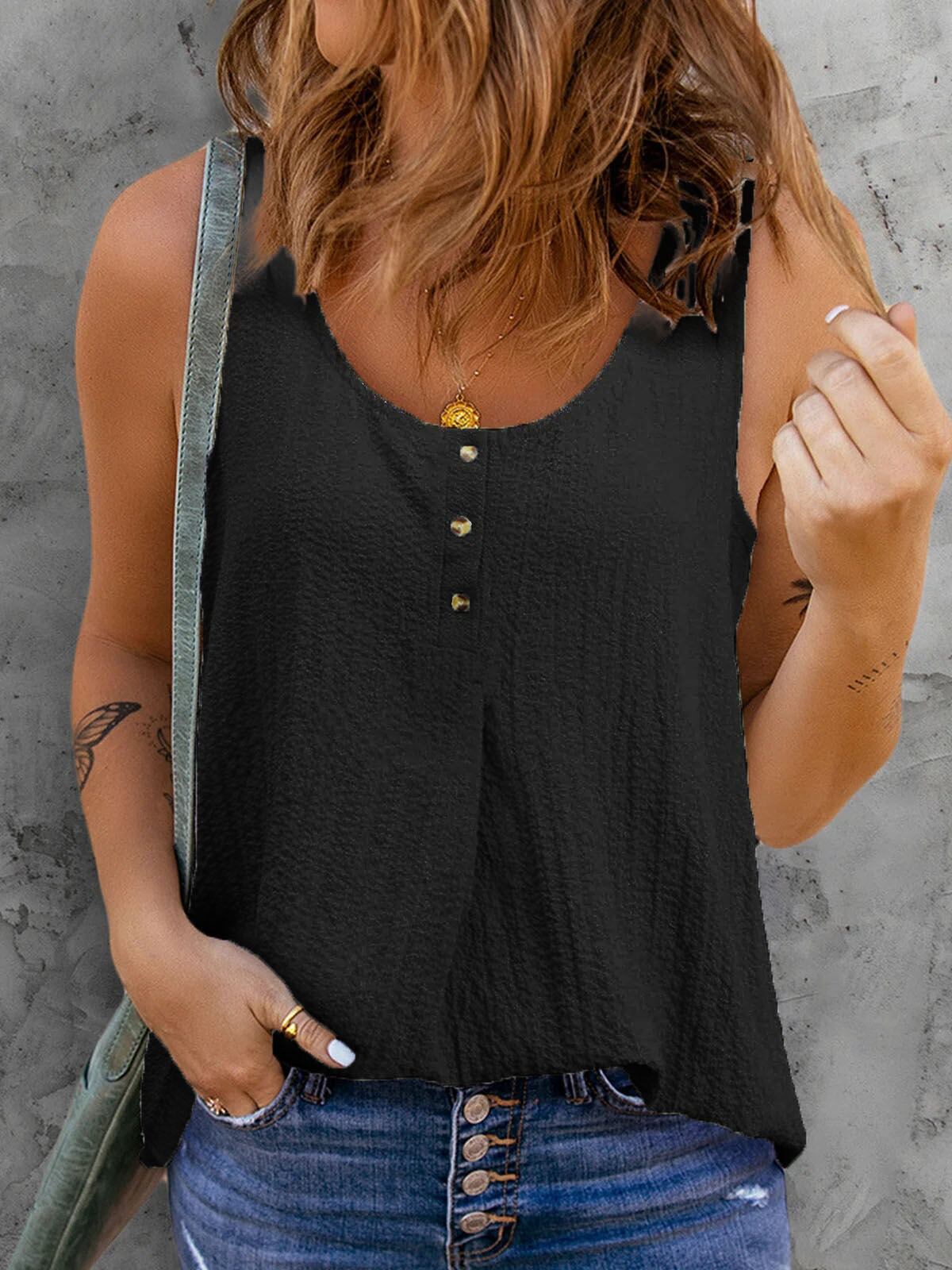 2022年春夏新作Amazonebay欧米無地ベストラウンドネックシャツコットンリネンシャツ婦人服 スプリング 春物 サマー 夏物 Oネック ソリッドカラー 6733064029335392