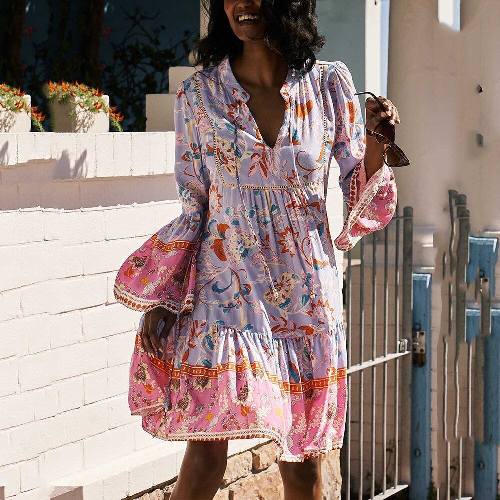 春と夏のファッション新しいヨーロッパとアメリカンスタイルのストリートアマゾンの女性のファッションフローラルシフォンケーキドレスショートスカート スプリング 春物 サマー 夏物 花柄 ヨーロピアン 6733097354099491