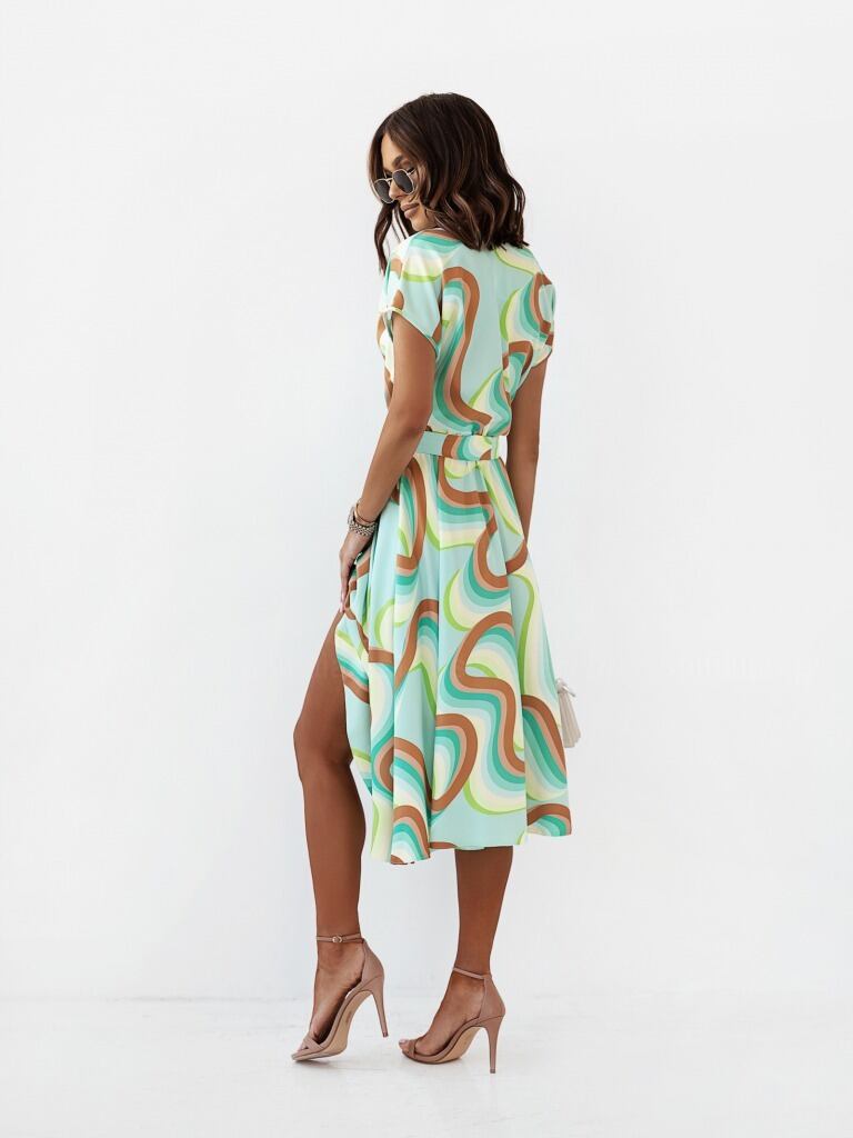 ヨーロピアンとアメリカンスタイルのストリートサマーニューファッションVネック半袖気質プリントアマゾンミドル丈ドレス 夏物 6733030403942727