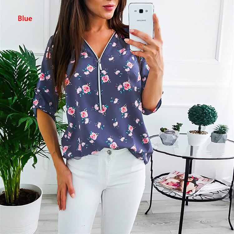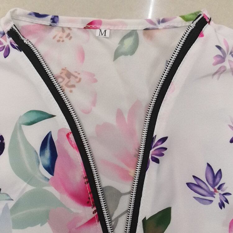 春夏新作ヨーロッパ・アメリカのストリートウィメンズ気質ウィッシュフローラルプリントシャツミッドスリーブ長袖シャツジッパートップ ロング スプリング 春物 サマー 夏物 花柄 ヨーロピアン 6733046171626213