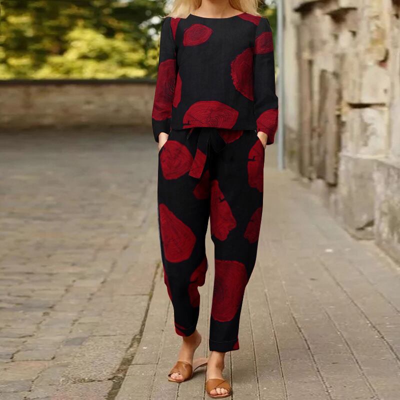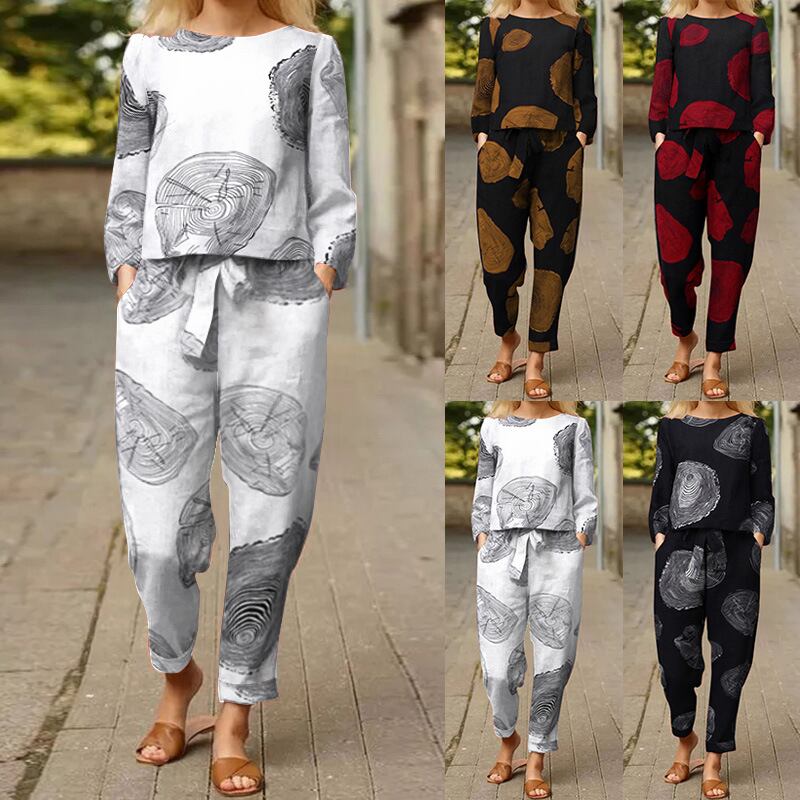 国境を越えたアマゾン秋ヨーロッパとアメリカのファッション気質セール新しい女性のフラワープリントカジュアルトップとパンツスーツ オータム 秋物 フラワーデザイン ヨーロピアン 6733046665244407