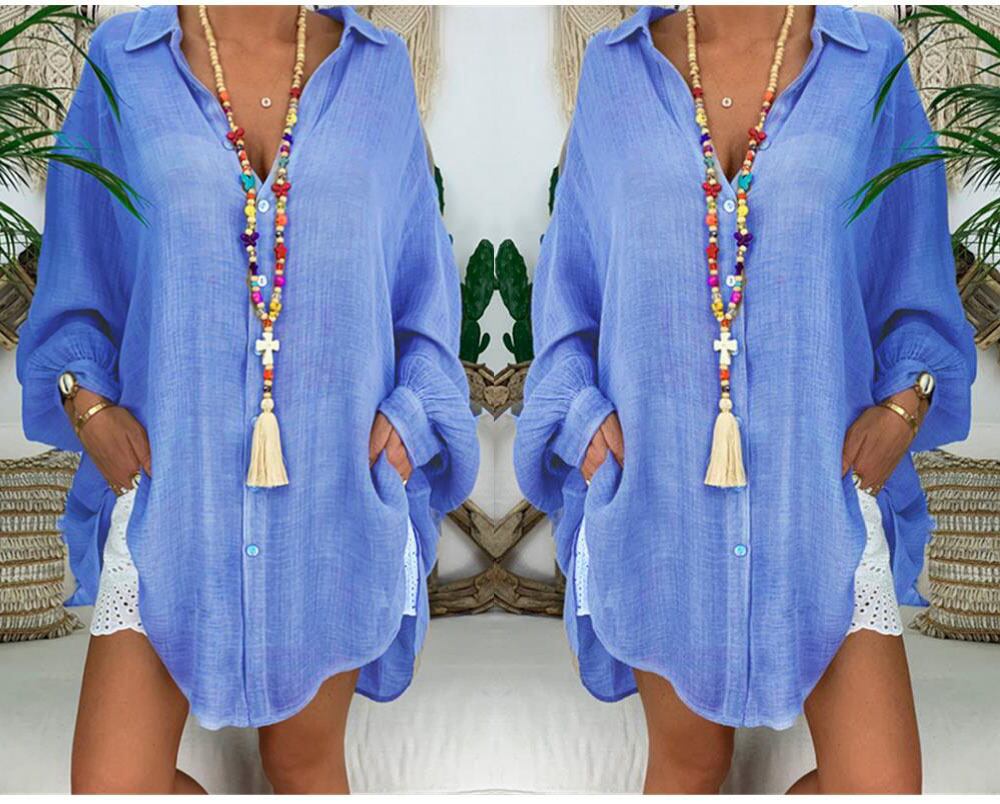 ヨーロッパとアメリカンスタイルのファッション気質コットンとリネンシャツラージサイズの女性のボタンルーズ長袖カジュアルシャツ女性のトップトレンディ ロング 大きめサイズ ヨーロピアン 6733053930397519