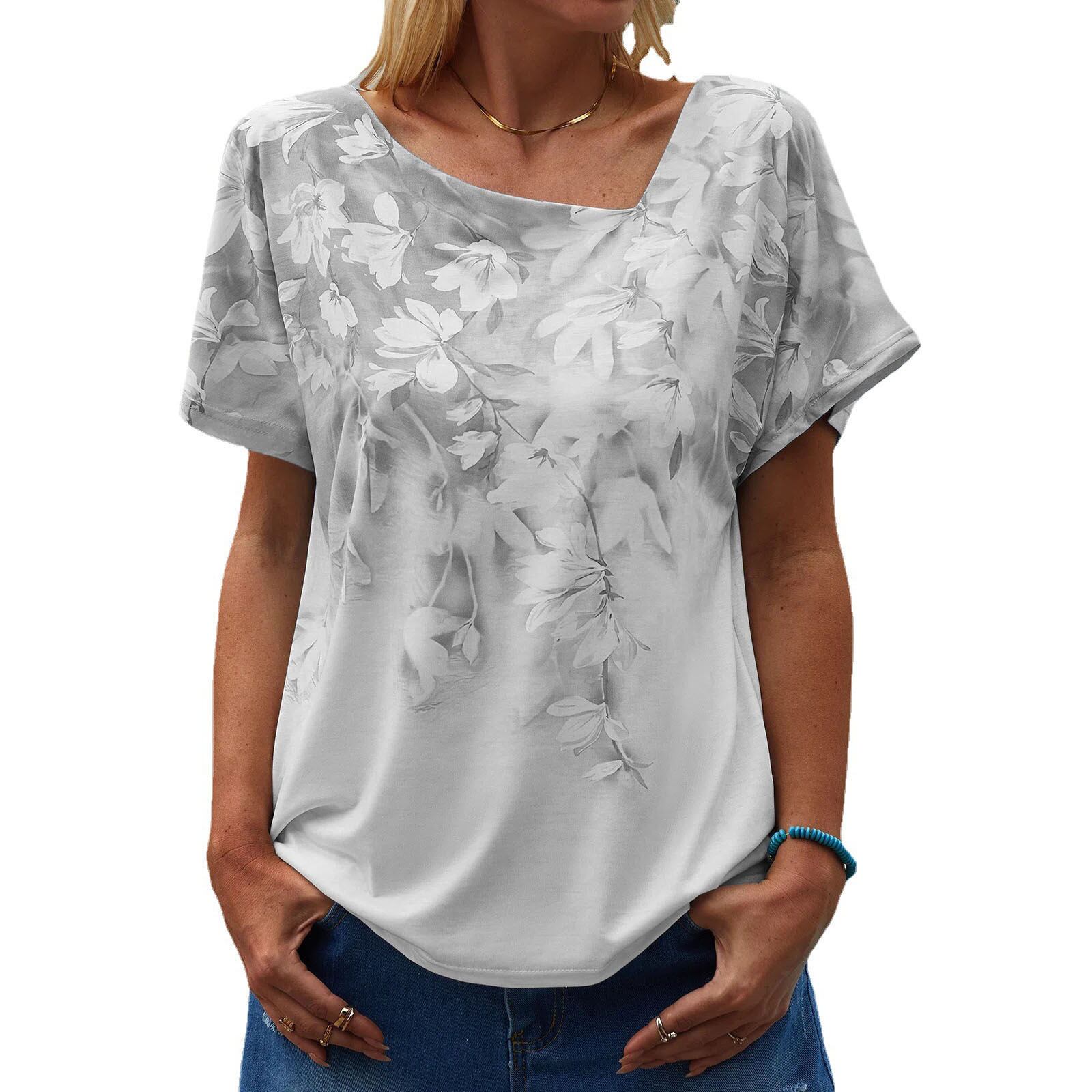 夏の欧米のファッション気質アマゾンの新しいウィッシュフローラルプリント半袖スラントネックルースウィミンTシャツ サマー 夏物 花柄 ヨーロピアン 6733075237575824