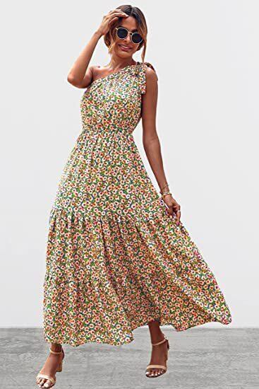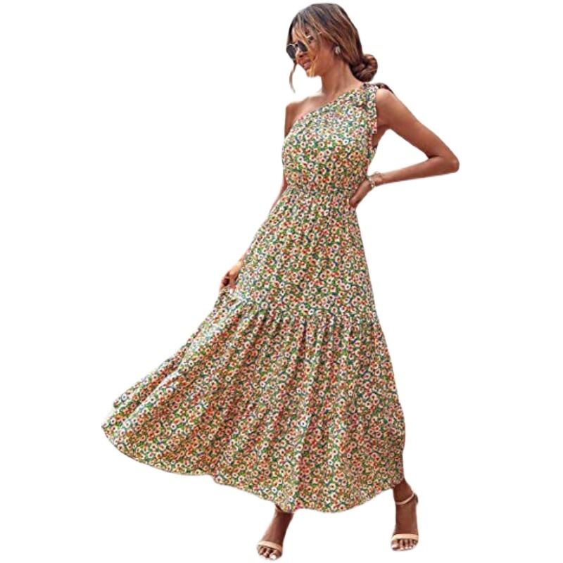 ヨーロッパとアメリカンスタイルのストリートファッションeignTrade婦人服アマゾン爆発製品斜めショルダーチューブトップ印刷層ノースリーブキンクドレス ヨーロピアン 6733034247278527