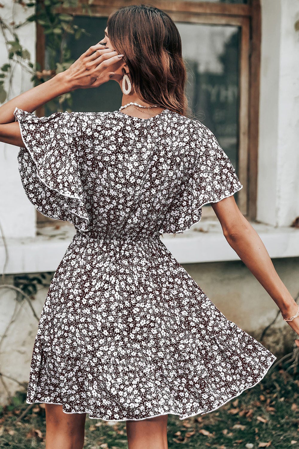 アマゾンヨーロッパとアメリカンスタイルのストリートファッション婦人服春と夏のVネックロータスリーフスリーブラージスイングスカートウエストコットンドレス スプリング 春物 サマー 夏物 ヨーロピアン 6733053072518965
