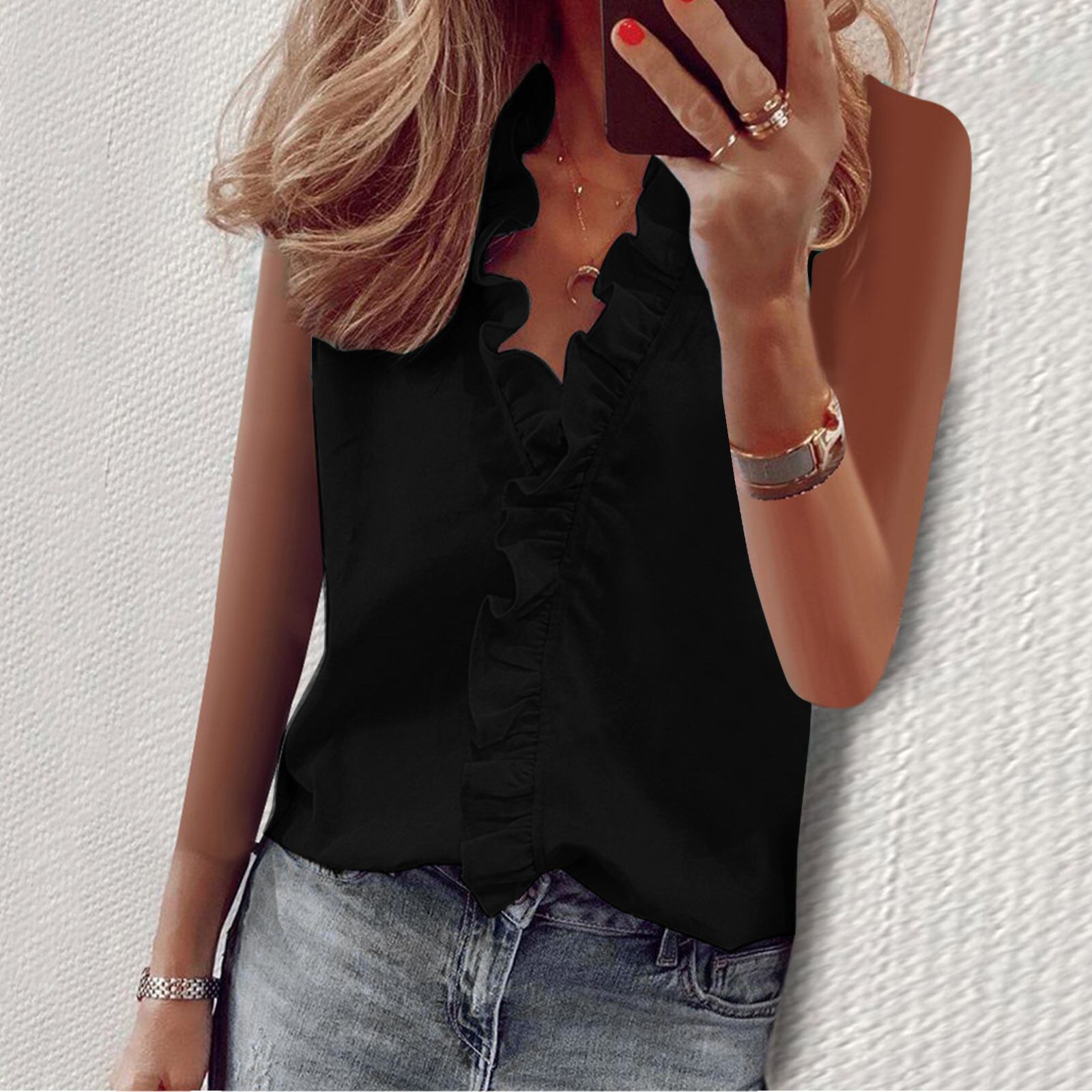 インディペンデントステーション春夏ヨーロピアンスタイルとアメリカンスタイルのストリートファッション新しいノースリーブフリルシャツラージサイズレディーストップスTシャツ 大きめサイズ スプリング 春物 サマー 夏物 6733057208404935