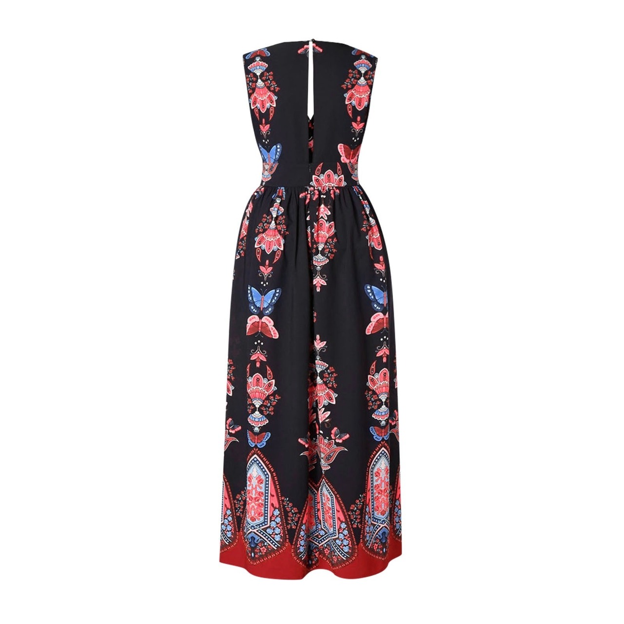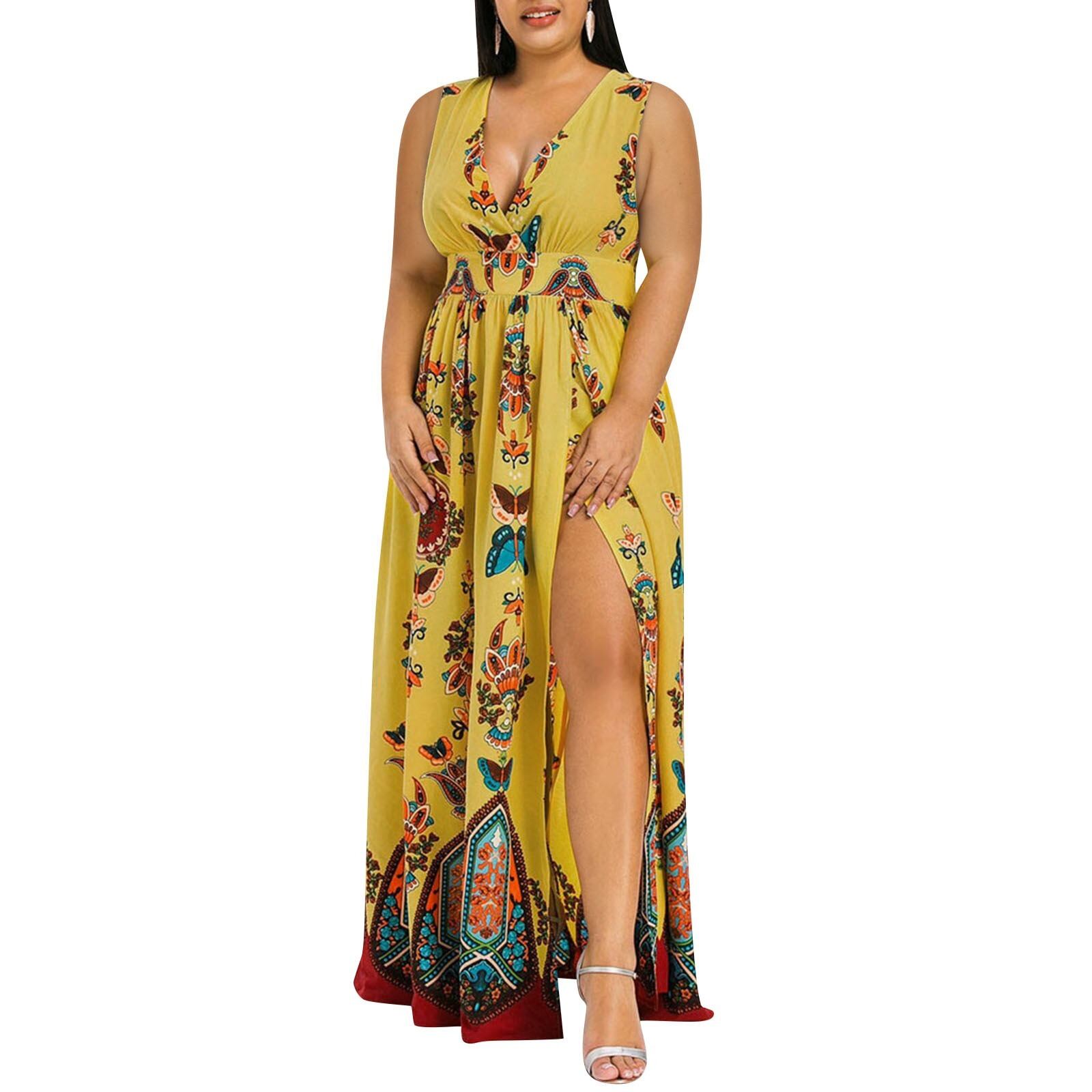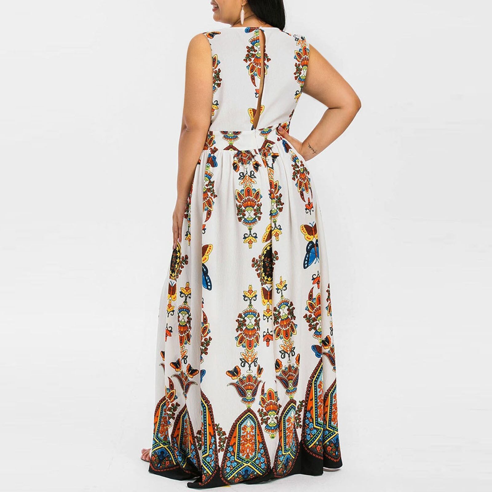 アマゾンヨーロッパとアメリカのストリートモップドレスレトロなプリントVネックスプリットオープンバックミッドウエストラージサイズノースリーブドレス 大きめサイズ 6733015770621830