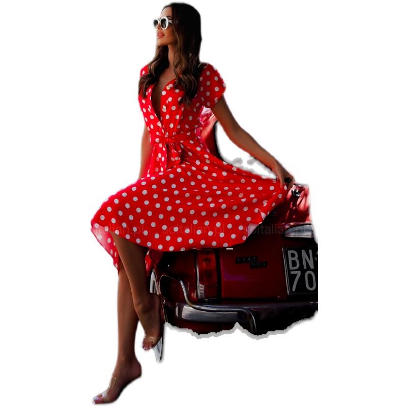 ヨーロッパとアメリカンスタイルのストリートファッションAmazonAliExpressの新しいVネックストラップ水玉ウエストプリントドレスタイド ヨーロピアン 6733015694558187