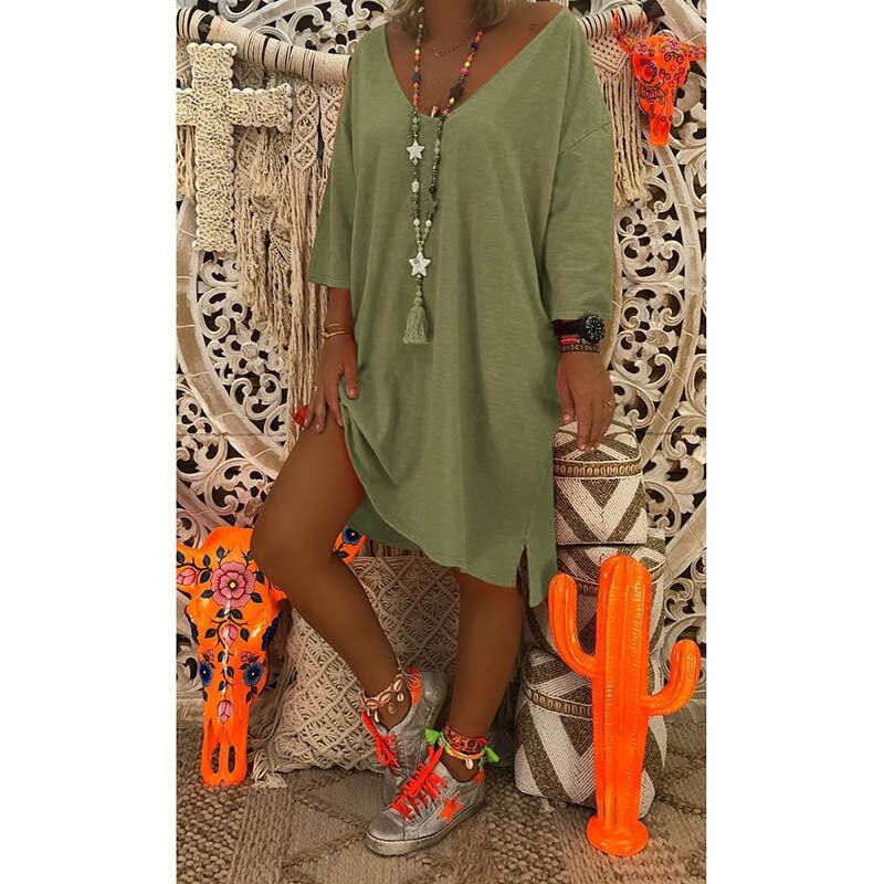 AliExpressの願いアマゾンヨーロッパとアメリカのストリートファッション夏の爆発女性の長袖ルーズ無地ドレストレンド ロング サマー 夏物 ソリッドカラー 6733041677103856