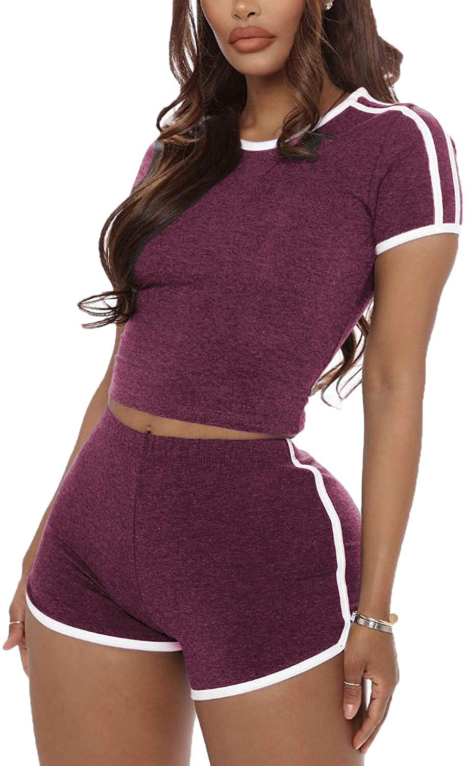 ヨーロッパとアメリカのストリートファッションの気質のコントラストカラーのスポーツとレジャーの女性のツーピースのセクシーなクロップトップとショーツのスーツ ブルマー ヨーロピアン 6733096375948671