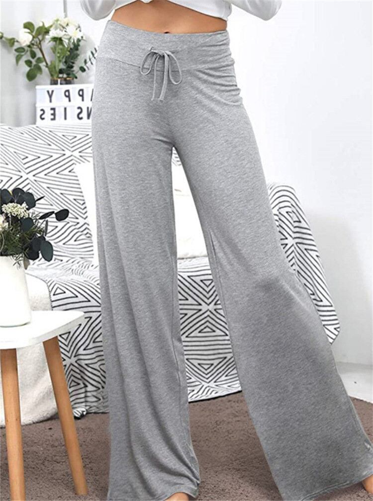女性の願いヨーロッパとアメリカのストリートファッションebayアマゾン無地ルーズワイドレッグハイウエスト伸縮性カジュアルパンツ ハイウェスト エラスティック ワイドパンツ ソリッドカラー ヨーロピアン 673303800055371