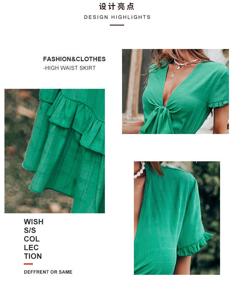 ヨーロッパとアメリカンスタイルのストリートファッション春と夏の新しい女性のVネックローカットボウ半袖ウエストレングスクロスボーダードレス リボン スプリング 春物 サマー 夏物 ヨーロピアン 6733064176485985