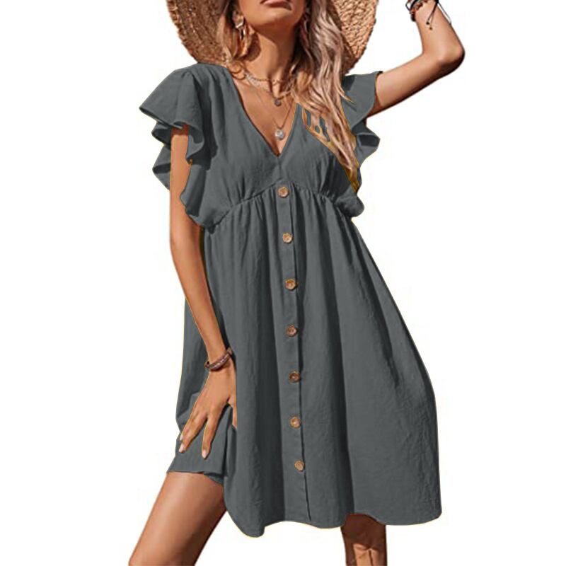 ヨーロッパとアメリカのストリートファッション気質クロスボーダーレディースミドル丈スカートカジュアルプリーツVネックボタンファッションラージサイズドレス 大きめサイズ ヨーロピアン 6733087799217807