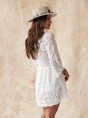 ヨーロピアンとアメリカンスタイルの春と夏は、国境を越えた外国貿易アマゾンが白いラウンドネックの中空のルーズドレスを販売するファッションを送ります ホワイト スプリング 春物 サマー 夏物 Oネック 6733081114883684