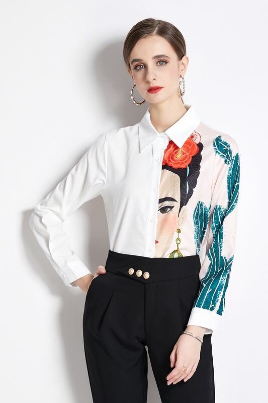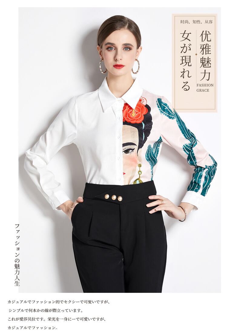 アマゾンの eign trade AliExpress ウィッシュ 欧米風 ストリートトップ 白シャツ 新作プリント 長袖シャツ 潮 ロング ホワイト ヨーロピアン 6733032015859944